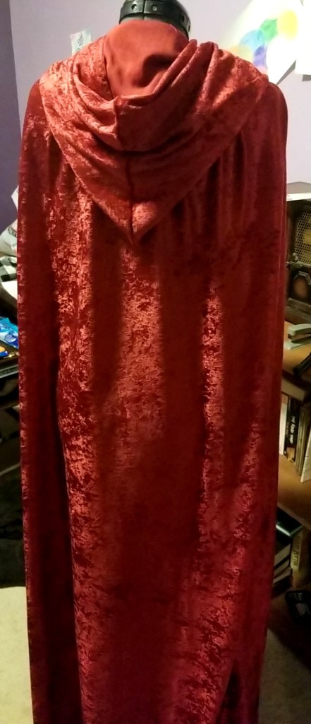 For the renaissance festival this summer, I made myself a red, faux velvet cloak that was one of the best things I ever made. I think I’m just a sucker for cloaks in general, and I would wear them in every day life if I wasn’t so scared to do so.